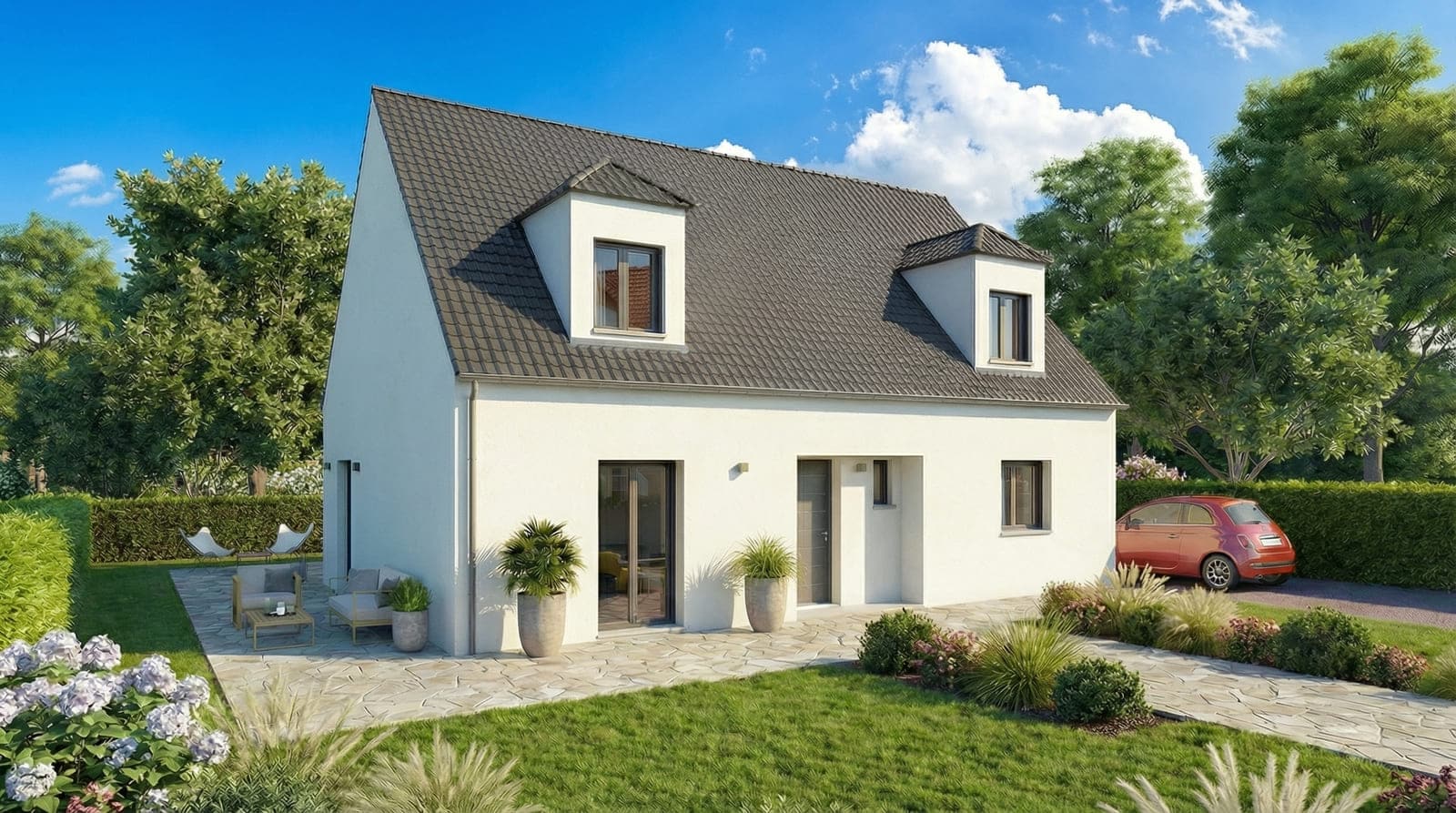 La Chainière est une maison traditionnelle à étage, offrant une surface habitable de 99 m² à 156 m² et différentes déclinaisons cumulant les avantages. Sa faible emprise au sol lui permet de convenir aux terrains étroits sans sacrifier l’espace intérieur. Cela en fait un modèle particulièrement intéressant pour les familles de toutes configurations.