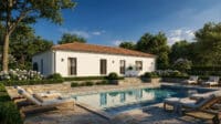 Le garage en L casse la ligne droite de la façade, ce qui constitue une vraie signature esthétique qui plaira à tous ! Quant au plan intérieur, il est plein d’intelligence : un espace nuit indépendant avec trois ou qautre chambres. Une magnifique pièce à vivre pleine de lumière.