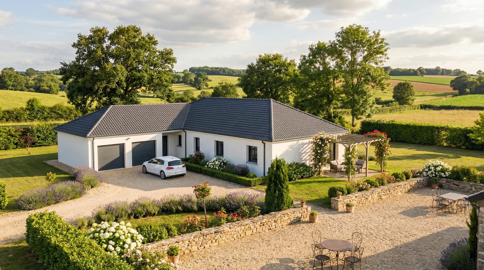 La Lunara est une magnifique maison en T de 150 m². Vous rêvez d’une maison offrant vraiment de très beaux volumes ? Alors, c’est vraiment LE modèle qu’il vous faute. Car elle est idéale pour les familles, qui y trouveront un très grand confort et beaucoup d’espace. Dotée d’un toit traditionnel, ses lignes épurées et simples lui confèrent charme et élégance.