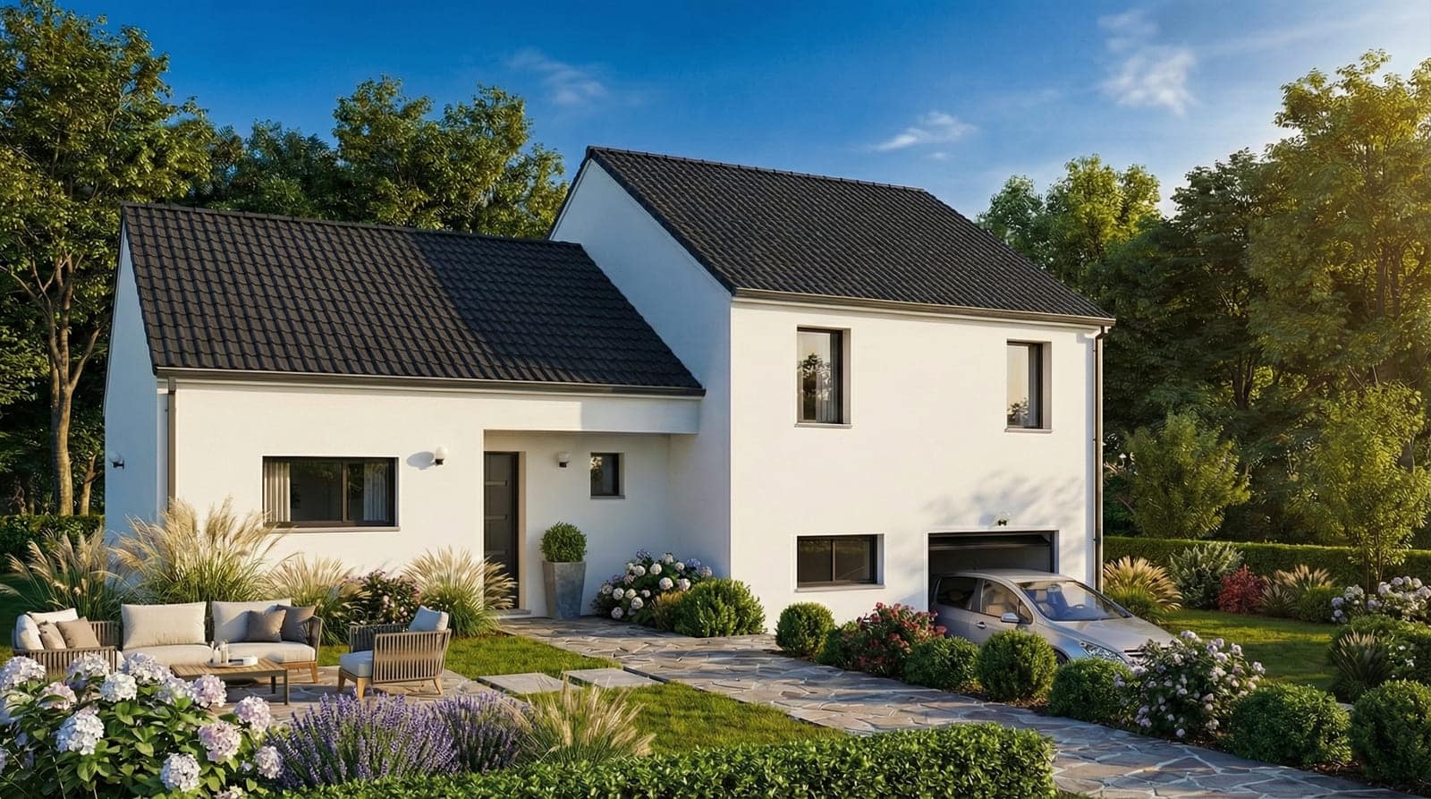 Le dénivelé de votre terrain n’est pas un problème pour la Neuvillière, au contraire, elle l’optimise ! L’astuce du demi-niveau offre une séparation entre les parties jour et nuit. Le séjour ouvert sur la cuisine offre un beau volume très convivial. Le garage, situé sous l’espace nuit, offre plus de 48 m². Outre ses volumes et sa configuration intérieure intéressante, cette charmante bâtisse offre un visuel très attractif. Vous craquerez pour sa double toiture et son allure rassurante.