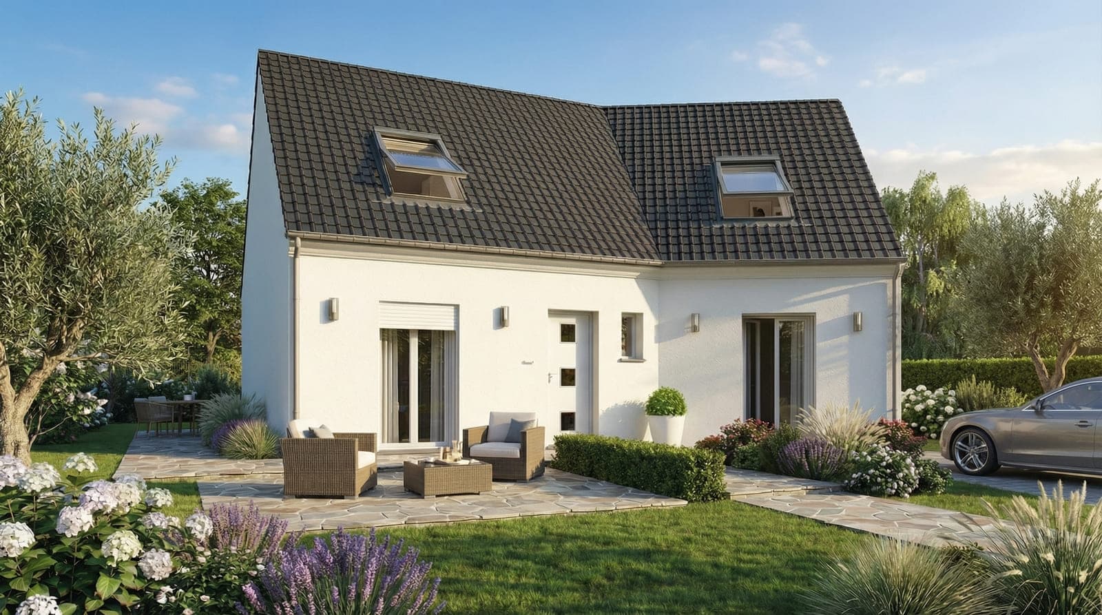 Notre maison en V à étage réussit le pari d’être agréable à vivre grâce à un intérieur optimisé et intelligemment conçu. Sa surface modulable de 122 m² à 151 m² s’adapte parfaitement à la composition de votre famille. Habiter dans une maison en V donne le sentiment d’espace à travers la disposition particulière des différentes pièces.
