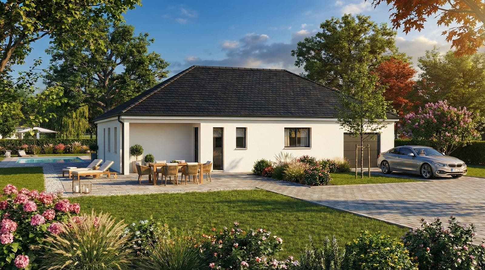 Conçue par Styl Habitat, cette maison de 95 m² en U se distingue par son agencement ingénieux et ses équipements modernes. Pensée pour le bien-être de toute la famille, elle offre un cadre de vie harmonieux, alliant confort et praticité.