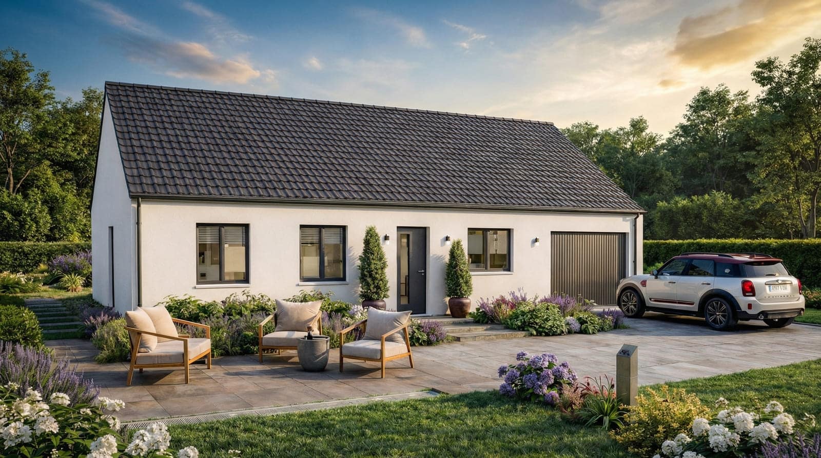 L’esthétique n’est pas en reste : sa façade bi-ton lui confère un style moderne et élégant, tandis que diverses options, comme les menuiseries en aluminium, permettent de personnaliser votre future maison selon vos envies.